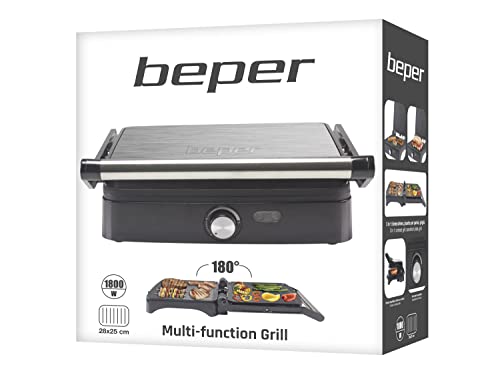 BEPER P101TOS502 Multifunctionele Grill, Panini Maker, Bakeliet/Staal, 1800 W, Grillplaat 28×25 cm, Opening van 180…