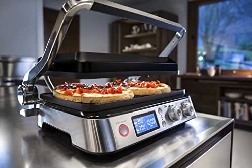- Intelligente recept-app leidt door alle stappen van de bereiding, elektronische temperatuurcontrole, 2 onafhankelijk instelbare verwarmingselementen, groot, exclusief digitaal display (7 x 3 cm), digitale timer met automatische uitschakeling, eenvoudige reiniging dankzij afneembare grillplaten (geïntegreerd verwarmingselement), geïntegreerde vetopvangbak.