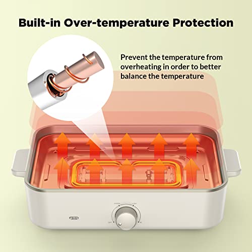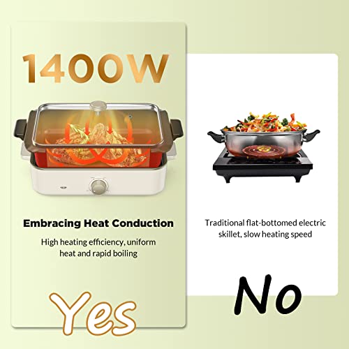 Multifunctionele elektrische pan: de elektrische pan wordt geleverd met grillpan en diepe pan en kan aan de meeste behoeften bij het koken voldoen. Je kunt lekkernijen stoven, koken, grillen, braden, zoals je wilt, bijvoorbeeld gebakken groenten, aardappelpannenkoeken, pannenkoeken, zelfgemaakte soep. Geschikt voor familiefeesten.