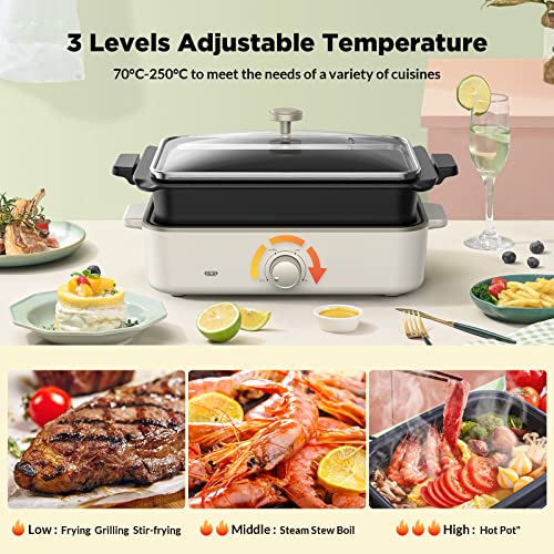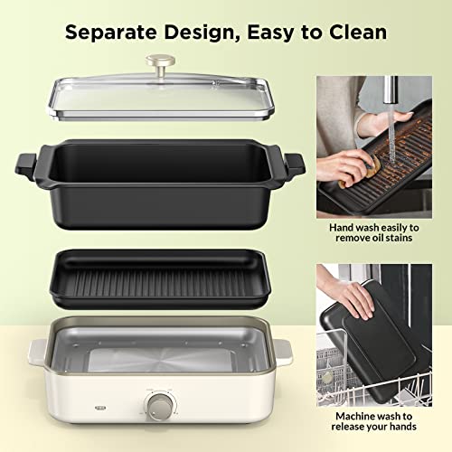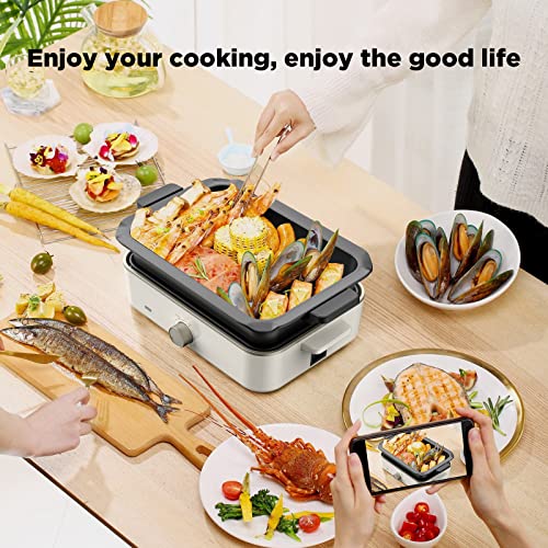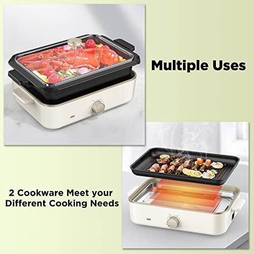 HZHNS Elektrische grill kookpot 2 in 1 elektrische pan – multifunctionele koekenpan met grillplaat & diepe pan, hotpot…