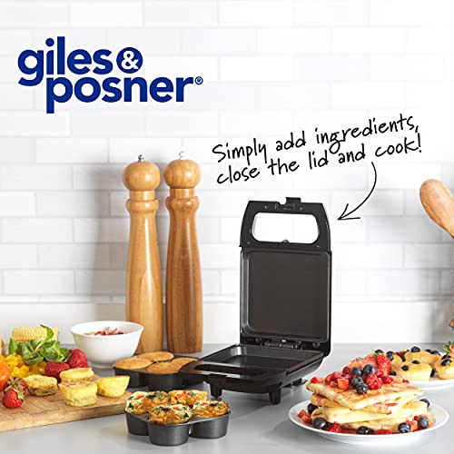 Giles & Posner EK4488GVDEEU7 Compact Mini Snack Maker, 600 W, Non Stick Cooking Plate, Cooks 4 Mini Bites/ 50ml per Egg…