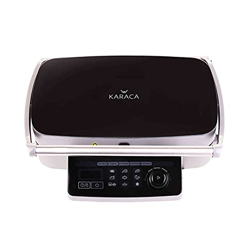 Karaca De elektrische grill heeft 9 functies voor het ontdooien van vleesballen, lamkoteletten, vlees, kip, vis, groenten, hamburgers/toast, salami en worstjes. Contactgrill, het verlichte controlesysteem geeft het kookniveau aan en maakt het de gebruiker mogelijk om het kookproces gemakkelijk te volgen.