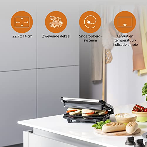 Met een vermogen van 700W is de contactgrill snel op de juiste temperatuur