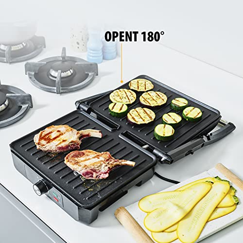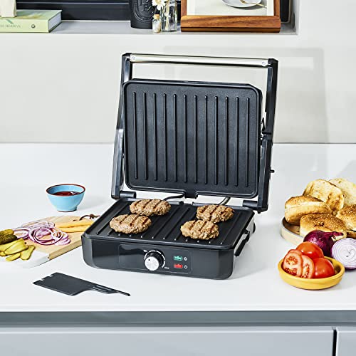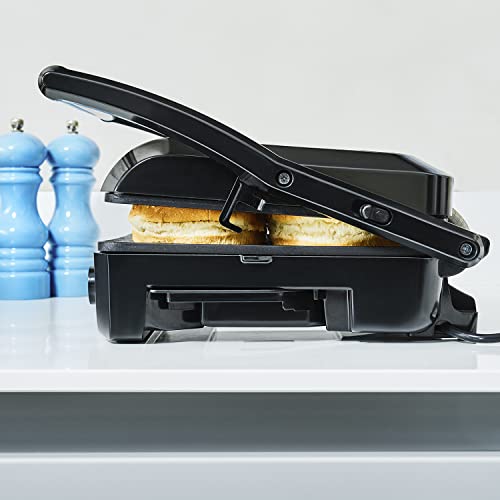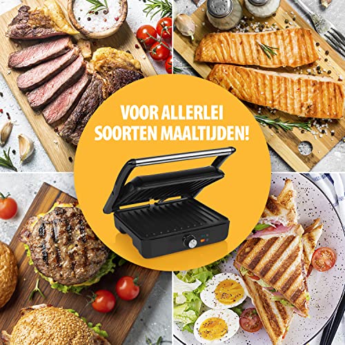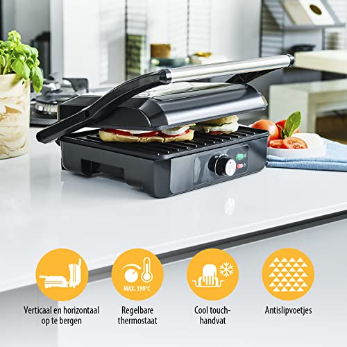 Dankzij het volledig te openen roestvrijstalen deksel kun je de grill als tostiapparaat en als bakplaat gebruiken