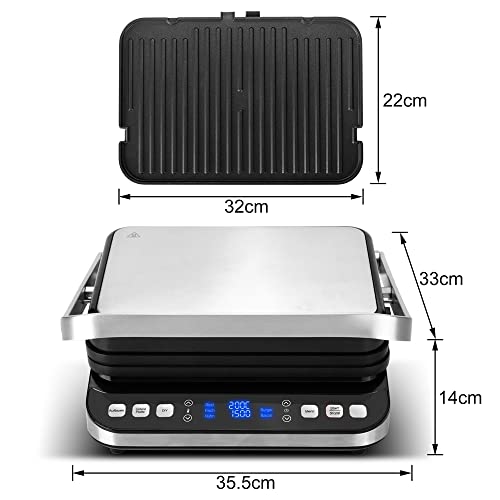 De anti-aanbaklaag van de grillplaten zorgt ervoor dat het gerecht gemakkelijk loslaat en vergemakkelijkt het reinigen – grillplaten vaatwasmachinebestendig – uitneembare lekbak voor vet, vleessappen, enz.